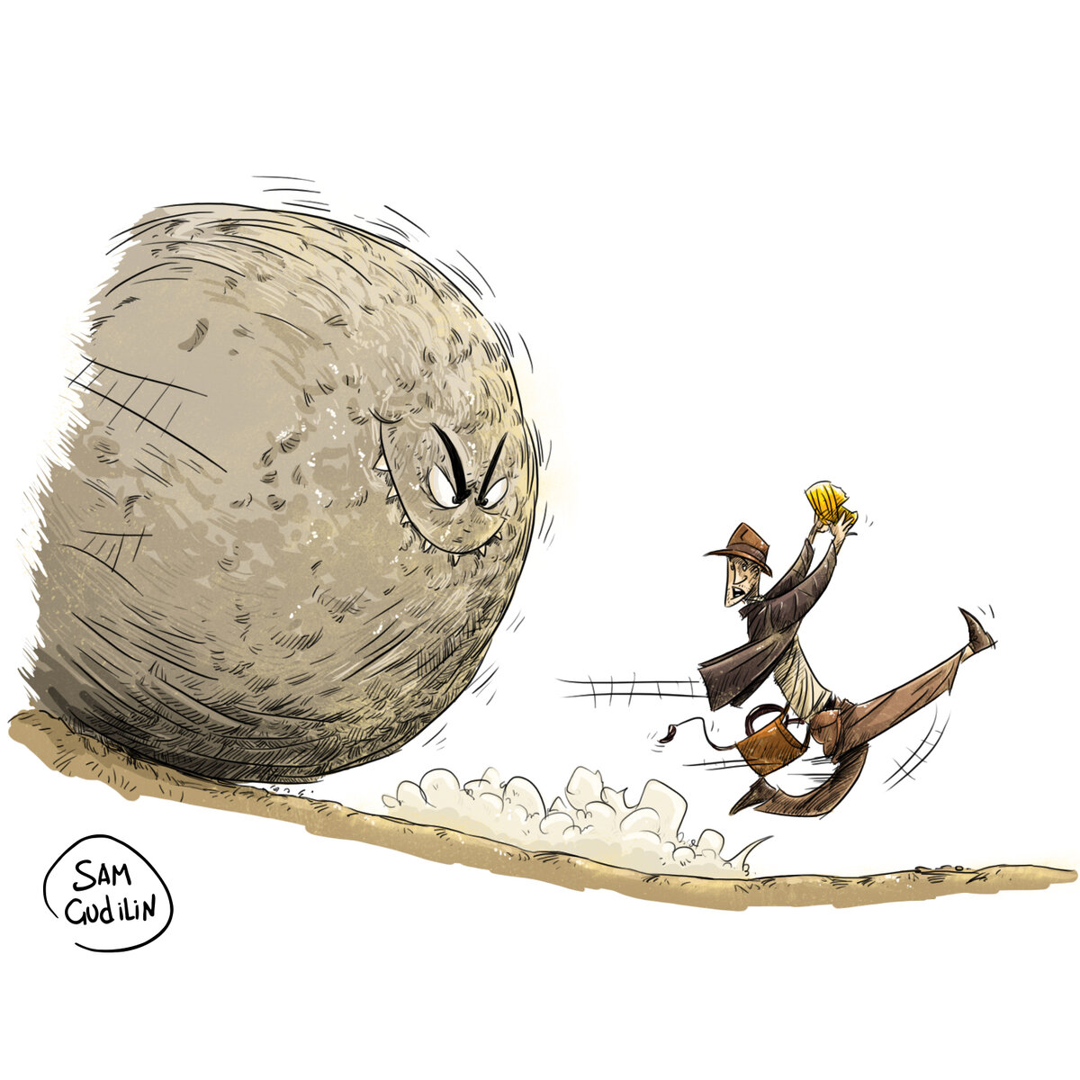 Сегодня в честь того, что я участвую в конкурсе и как обычно делаю всё в последний день, разбираем поэтапный процесс создания иллюстрации. Задание называется: опубликовать инструкцию, как рисовать любимого персонажа. Идея Эпизод из первого фильма «Искатели потерянного ковчега» 1981 года (если кто не смотрел обязательно наверстайте упущенное или застрелитесь ибо вы не видели один из самых лучших фильмов за всю историю кино) где Инди стырил идола и бежит из разрушающегося пещерного храма и его начинает преследовать огромный валун — одна из многочисленных ловушек. Процесс 1) Первое — это набросок 2) Далее что нам необходимо — это найти референсы, чтобы уточнить детали (хотя всю экипировку Инди я знаю наизусть, но всё же) и сделать разбивку по цветам. Вот эта фотка мне очень подошла 3) Контурный абрис наброска в фотошопе. Мне нравятся черные контуры и ничего не могу с собой поделать) 4) Разбивка по цветам. Тут берем цвета с референса. Для камня я брал цвета интуитивно. Обычно в жизни встр