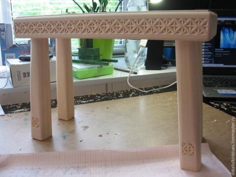 12. Следующий день оказался солнечным. Это очень хорошо, так как резьбу лучше делать при естественном дневном освещении. Глаза меньше напрягаются. Перед резьбой я прикинул на куске миллиметровки несколько вариантов орнамента. Выбрал оптимальный, и ринулся в бой. Начертил придуманный орнамент на сидении