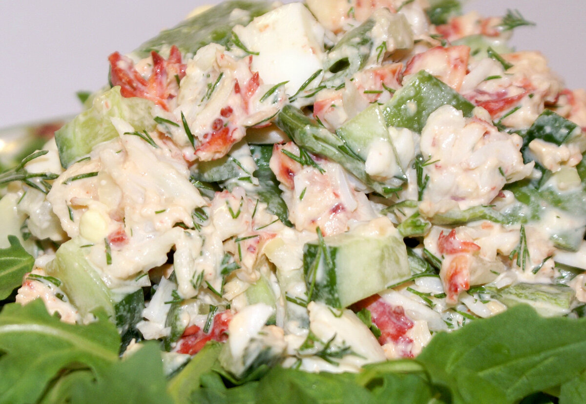 Аппетитный салатик с плавленым сыром и крабовыми палочками