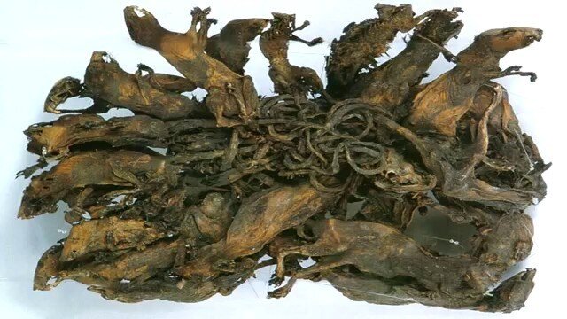 Сегодня поговорим о таком явлении как "крысиный король". "Крысиный король" считается мифическим существом, состоящим из нескольких крыс со связанными в общий узел хвостами. Якобы остальные крысы выбирают главного и кормят своего "короля". Но на самом деле, случаи нахождения "крысиных королей" не редки и действительно подтверждены документально. Как же получался такой король? Считается, что в очагах возникновения колоний крыс детеныши сплетаются лапками или хвостами в результате очень тесного контакта. С возрастом, хвосты костенели и появлялся тот самый "крысиный король". Известно примерно о 50 случаях нахождения таких гнезд. В основном, сплетались черные крысы, и практически ни одного случая нахождения сплетения в гнезда крыс другого вида. В средневековье "крысиный король" считался одним из самых ужасных знаков, помощником дьявола. И нашедший его человек мог попасть в руки инквизиции как подельник дьявола. В этом есть своя логика: "крысиный король" считался предзнаменованием очень тя