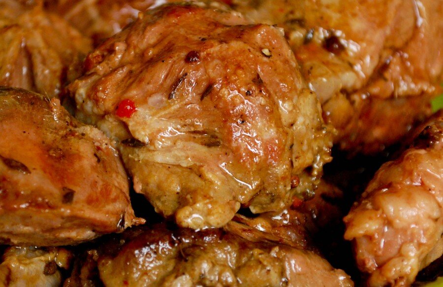 Бюджетное мясо – это всегда быстро, вкусно, просто и дешево. Поэтому предлагаем вашему вниманию простой и недорогой рецепт запеченных свиных щечек, которые предварительно отвариваются в луковом отваре и шпигуются чесночком. Ингредиенты: • 0,5 кг свиных щечек (3 шт.); • 0,5 л обычной воды; • 6 зубков чеснока; • 2 горсти луковой шелухи; • 2 лавровых листа; • 2 ч. л. хмели-сунели; • соль, черный молотый перчик.