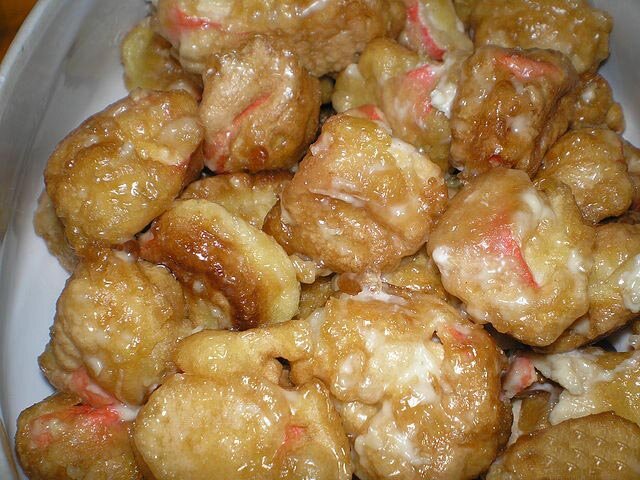 Предлагаю вам рецепт необычной и очень вкусной закуски. Все мы или почти все любим крабовые палочки. Я их люблю не только в салатах, просто так, целую пачку да перед телевизором) А ведь можно из них приготовить изумительную закуску. Попробуйте, вам тоже очень понравится) Понадобится: 200 грамм крабовых палочек 2 яйца 1 ст. муки соль перец по вкусу раст. масло майонез 2-3 зуб. чеснока Приготовление: Крабовые палочки разрезать на 4 части (каждую). Яйца взбить с солью и перцем, добавить муку, добавить немного воды, хорошо перемешать до однородной массы. Нужно, чтобы кляр получился, как густая сметана. Крабовые палочки обмакивать в кляр и обжаривать на растительном масле до золотистого цвета. Чеснок очистить, измельчить, смешать с майонезом. Крабовые палочки в кляре полить майонезом с чесноком и перемешать. Закуска готова) Кстати, можно обойтись и без майонеза с чесноком, так палочки тоже получаются очень вкусными. Приятного вам аппетита) Добро пожаловать всем не подписавшемся) Присоединяй