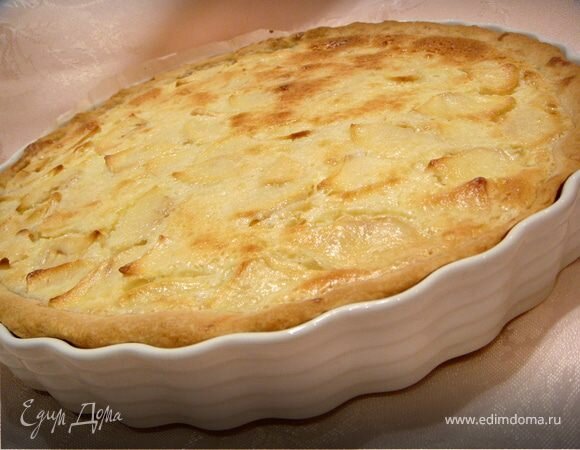 4. Залить яблоки в форме сметанной заливкой, слегка встря