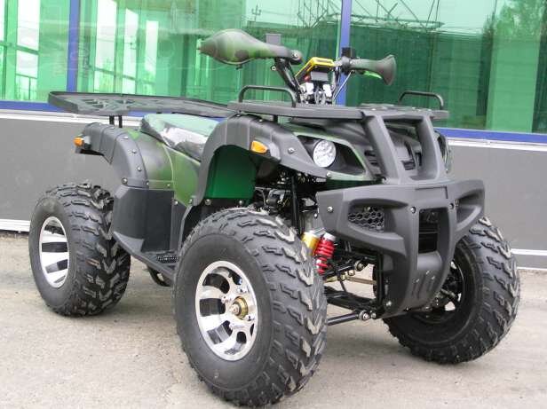 При весе в 145кг, грузоподъёмность составляет 150кг, а задние, 10 дюймовые колеса, с увеличенной шириной покрышки, убивают все оставшиеся сомнения. На этой модели уже напрочь отсутствуют системы активной безопасности, как бы намекая- всё, игры закончились. В этом квадроцикле используется 150 кубовый мотор, и традиционный вариатор- что делает из агрессивного облика более менее мягкий характер.