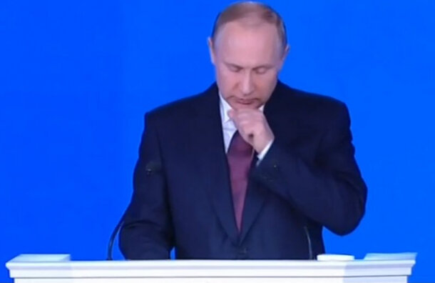 Президент России Владимир Путин 1 марта 2018 года периодически прерывает свое послание кашлем и пьет воду. Либо глава государства простужен, либо недолечился. Владимир Путин старается подавить кашель, но иногда у него это не получается. Отметим, что в конце февраля глава государства делал недельный перерыв в избирательной кампании, так как, по словам его пресс-секретаря Дмитрия Пескова, болел.