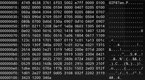 Вот так выглядит GIF-изображение, которое отображается как шестнадцатеричные значения: