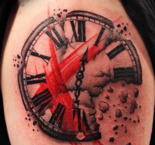 Тату треш полька часы: жизнь как миг Ничто так не подчеркивает быстротечность времени, как тату треш полька часы. Именно этот рисунок кричит о том, что минуты убегают слишком быстро. Треш полька любит изображение часов: привычные со стрелками и циферблатом, старинные песочные, даже солнечные, все они составляют львиную долю всех тату в этом стиле. Почему же так полюбилось изображение просто предмета обихода? Треш полька в часах: минуты ожидания или счастья? Все татуировки имеют скрытый смысл, часы же в свою очередь довольно просто объясняются: они отсчитывают время, которое есть у каждого из людей от момента рождения до смерти. У одних эти минуты бегут, у других – ползут, как песчинки сквозь слишком узкое горлышко. Вся идея треш польки состоит в напоминании о быстротечности времени. Отсюда и мотивы а-ля: «живи сегодня и сейчас», «не будь обыденным», «живи на полную». Только обрамлено это все в такие рисунки, которые сложно назвать положительными. Но на удивление именно они лучше всег