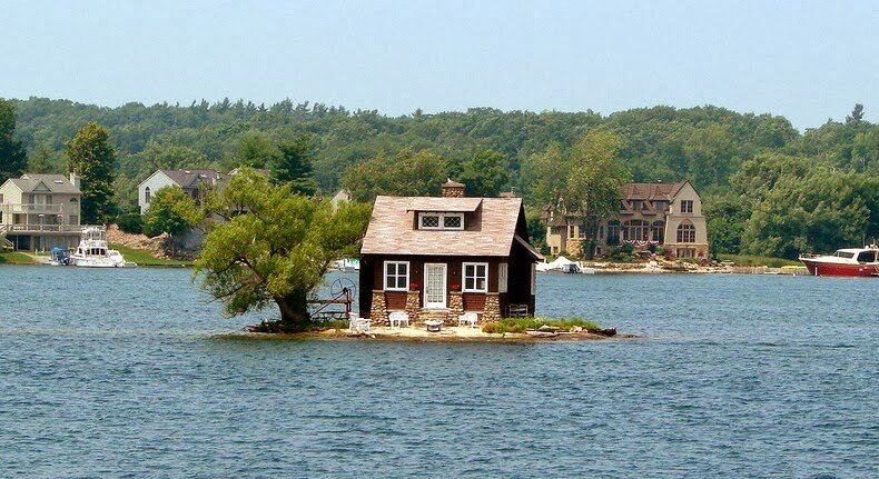 “Как же на нем живут люди?” – можете спросить вы. Удивительно, но стоит признать, что жизнь на нем довольно комфортна, ведь практически всю территорию занимает один единственный дом, принадлежащей семье Сайзленд. Они приобрели эту землю несколько десятков лет назад и дали ей простое название – остров “Просто достаточно места”. К слову, места тут не просто достаточно, а даже чуть-чуть больше, ведь над гладью воды возвышается не только дом стандартных размеров, но и посаженное семейством дерево, а также пара скамеек, с которых удобно наблюдать за окружающей водной гладью.