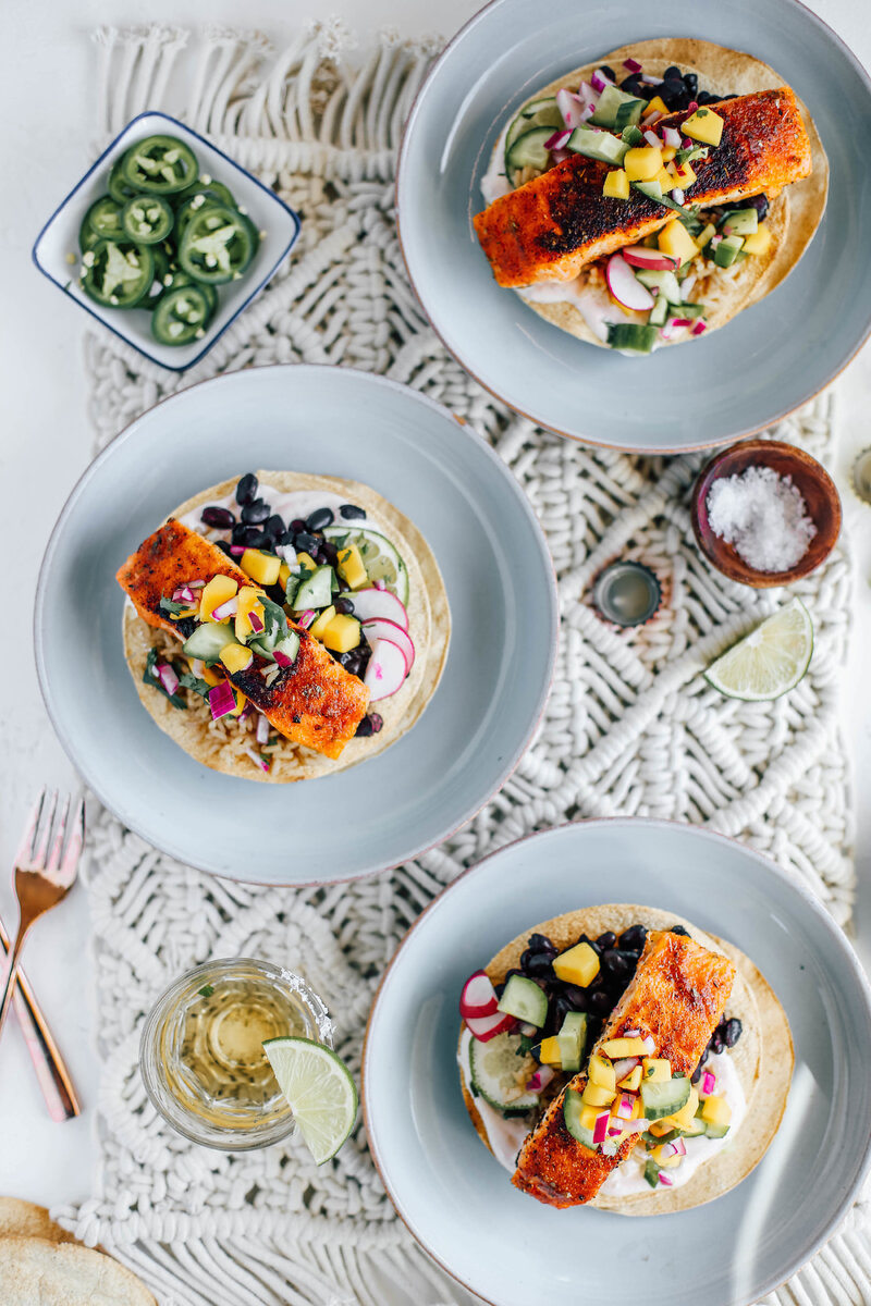 Лососевые тостады с огурцом Манго сальса 1 Пакетик Герреро Хорнедаса Запеченные тостады 3-4 Маленькие филе лосося