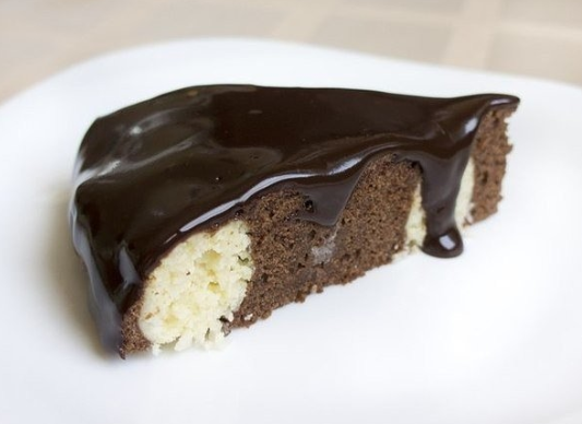 В воскресный выходной, так приятно порадовать своих любимых аппетитной, красивой выпечкой, которая своим ароматом разбудит весь дом. Нежная выпечка, с чашечкой кофе, понравится всем без сомнения! Ингредиенты Для шариков 1 пачка творога 50 гр. муки 1 яйцо 50 гр. сахара 50 гр. кокосовой стружки Тесто 180-200 гр. муки 3 яйца 150 гр. сахара 150 гр. шоколада 50 гр. какао 30 гр. крахмала 150 мл молока Пакетик ванилина и разрыхлителя Щепотка соли Глазурь 150 гр. шоколада 1 столовая ложка меда 20 гр. сливочного масла 50 мл сливок Приготовление Сначала приготовим творожные шарики: тщательно растираем творог с сахаром, затем добавляем яйцо муку и кокосовую стружку. Сформируем из полученной массы шарики и поместим их на дно формы для запекания застеленную пекарской бумагой. В отдельной кастрюльке нагреваем молоко и растопим в нем шоколад. Оставим остывать, а затем добавляем желтки, взбитые с сахаром, подсыпаем по немного просеянные через сито муку, какао, разрыхлитель и крахмал, перемешива