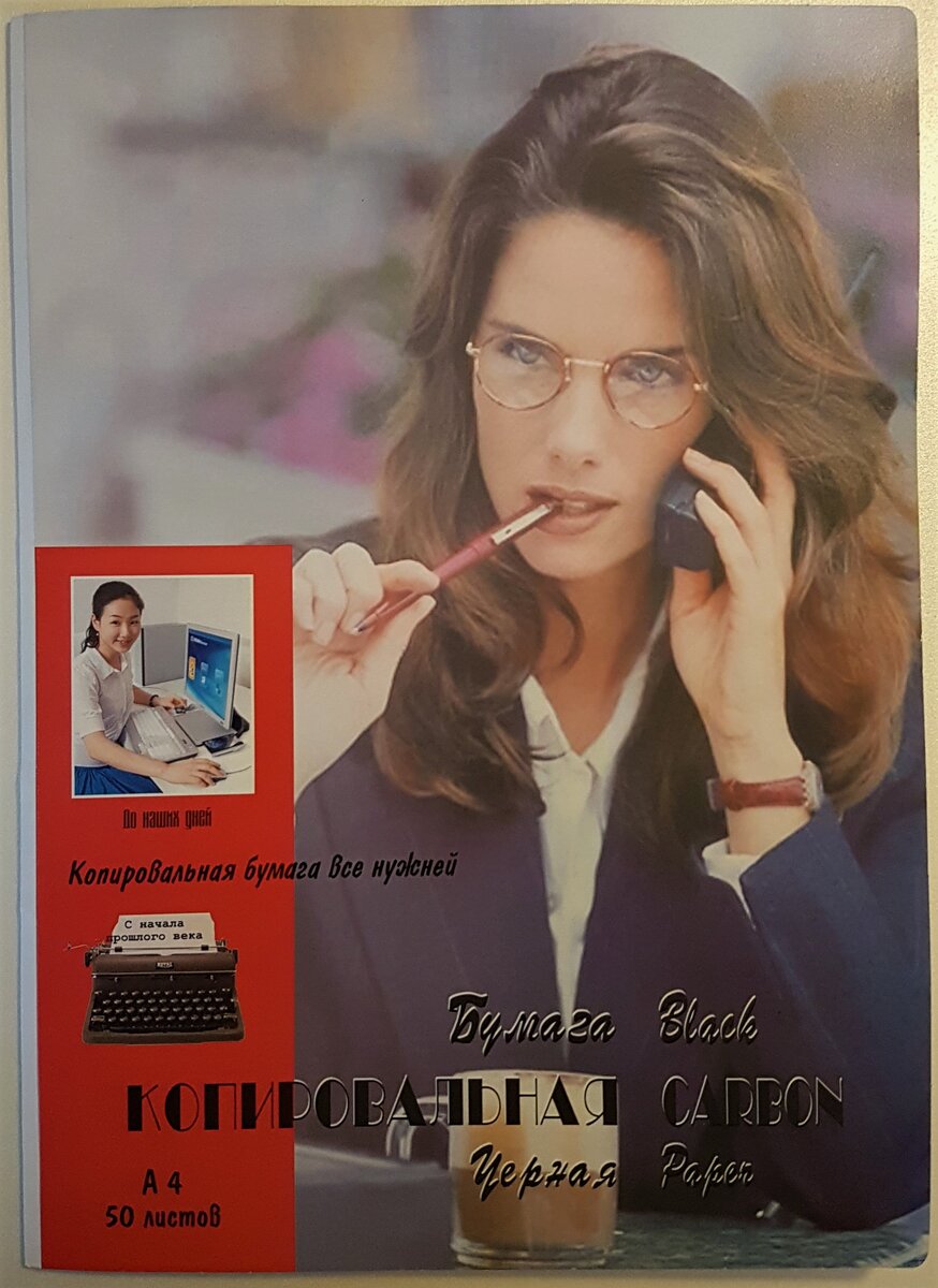 Слоган на упаковке: "Копировальная бумага все нужней".