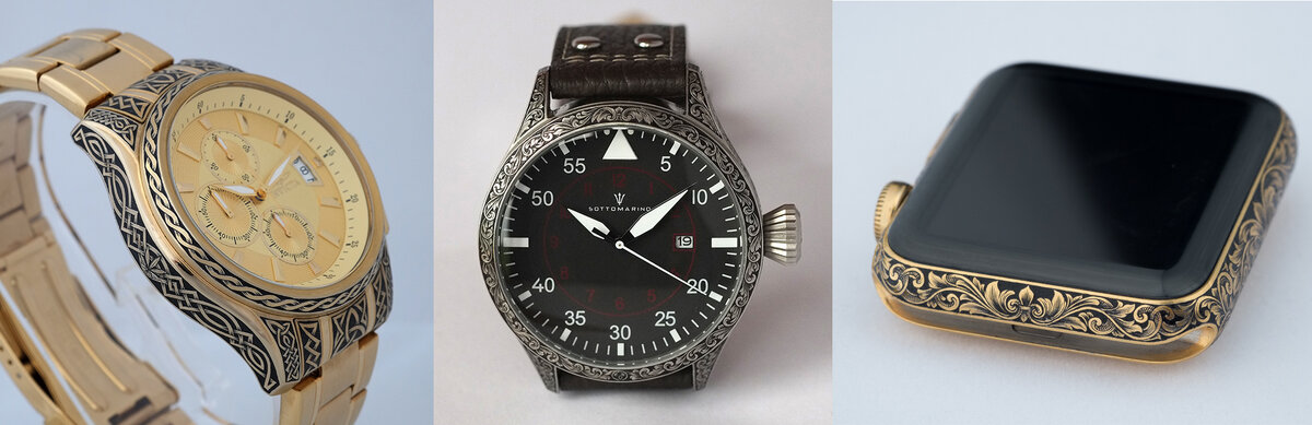 Большую часть портфолио гравера Viljo Marrandi составляют обручальные кольца, зажигалки Zippo и часы - и классические хронографы, и Apple Watch. Есть и примеры гравировки на iPhone. В декабре 2015 года гравировка на пистолете SIG Sauer P226S стала самым масштабным проектом в карьере мастера. Рамка и кожух-затвор без внутренностей и накладок на рукоятку. Нанесены золотые «рамки». Пистолет готов к гравировке. Рабочее место мастера. Обратите внимание на количество референсов как должен выглядеть череп. После нанесения линий орнамента, мастер вырезал место под череп и начал укладывать золото (24 карата). Сначала все выглядит достаточно грубо. Затем шлифуется. По тому же принципу на кожух-затвор была нанесена рука скелета. Промежуточный результат после растушевки теней. Окончательный вариант гравировки. И пистолет в сборе. Вид слева. Рамка и кожух-затвора получили золотые вставки с коброй. Вид справа. Viljo Marrandi отметил, что на гравировку ушло 320 часов работы. 40 восьмичасовых рабо