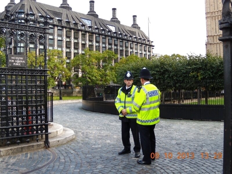 И огромные эти сумки и чемоданы, которые так любят таскать с собой туристы на просмотры достопримечательностей, а особенно тех, где обитают важные для британщины персоны, так вот эти чемоданы тоже не мешали полицейским спокойно нести службу.