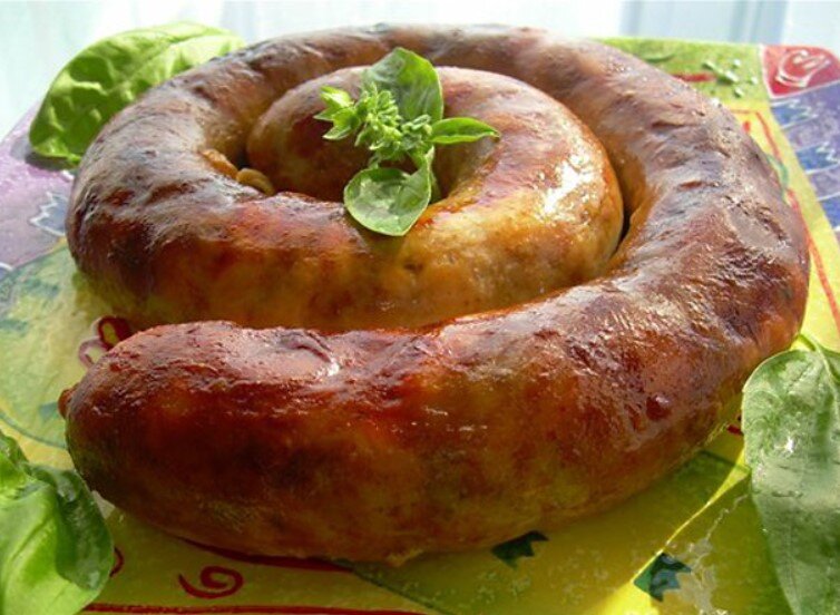 Домашняя колбаса — самый вкусный рецепт.Вот он, самый вкусный рецепт приготовления домашней колбасы! Готовить просто, а на вкус колбаска получается вкусной и нежной, и совсем не жирной. Это просто потрясающая замена магазинной покупной колбасе, намного полезнее. Для приготовления нам понадобятся: — по 1 килограмму свиной шеи и телячьей вырезки; — 100 миллилитров коровьего молока; — свиные предварительно очищенные и вымытые кишки (примерно 2 метра); — столовая ложка белого сахара; — головка чеснока; — одно куриное яйцо; — соль, перец, любимые специи по вкусу. Домашняя колбаса — рецепт приготовления: Сначала подготовим мясо. Для этого тщательно его промываем, обсушиваем, отрезаем толстые сухожилья, пленки, после режем на куски. В глубокую миску через мясорубку с крупным решетом пропускаем мясо.