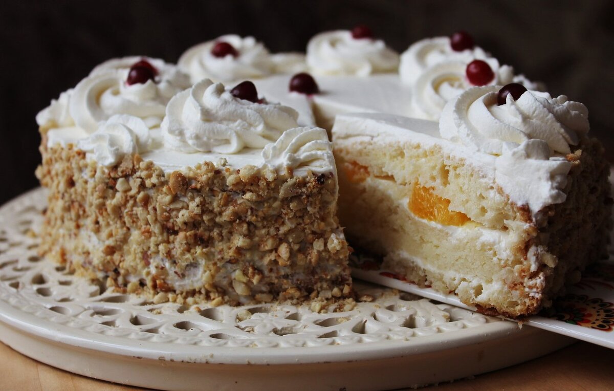 Приготовим очень вкусный, не приторный торт с двумя видами крема, фруктами, причём совсем не дорого!