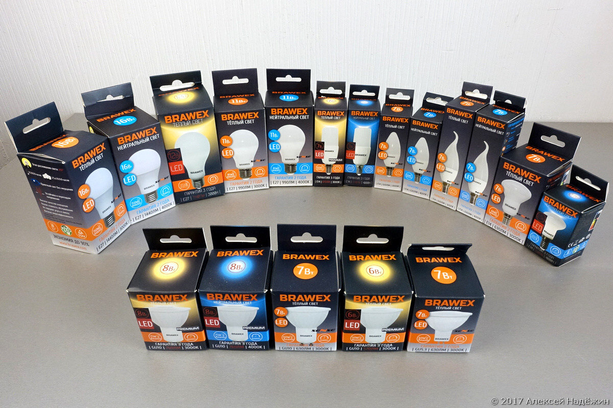 Помимо протестированных ламп, у Brawex есть капсульные лампы с цоколем G9, большие шары 95 и 120 мм, лампы-трубки Т8, светильники, прожекторы.