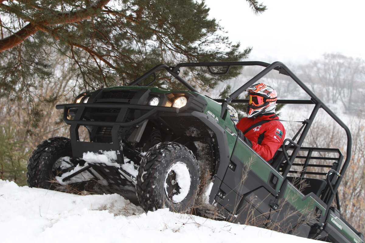 Но ничтожная статистика продаж уже обозначала приоритеты наших покупателей: народ предпочитает полный фарш, где помимо всяких внедорожных игрушек вроде лебедок и силовых обвесов есть вариант полностью закрытой кабины, с дворниками на лобовом стекле и полноценным обогревателем, только такая будка стоит еще 520 тысяч рублей. Увы, такой машинки не было в пресс-парке, интересно протестировать эффективность «печки» в условиях нашей зимы. Любопытно, что «большой»Kawasaki Mule Pro-DXT EPS Diesel и его младший вариант Kawasaki Mule Pro-DX EPS Diesel почти не отличаются по цене: 1 миллион 393 тысячи и 1 миллион 333 тысячи рублей, соответственно, а единственный конкурент на нашем рынке в этом формате, Polaris Ranger Diesel, заметно дороже – 1млн 702 тысячи рублей.