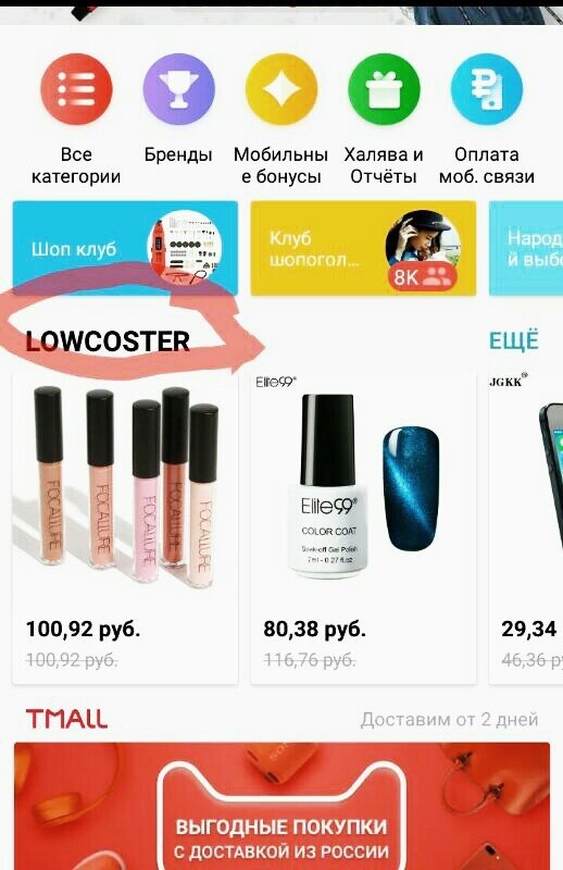 Лоукостер - это новая площадка от Алиэкспресс. Запущена 5 февраля 2018 года. Назначение - привлечь мало бюджетную аудиторию и создать конкуренцию интернет-магазинам на российском рынке. Чем же привлекать собрались? Да ценами, же, конечно. На Лоукостере будут выставлены товары стоимостью до 600 рублей. Из двадцати наименований, наиболее популярных на Али, шесть входят в лоукостер. Как попасть на Лоукостер? На сайте Алиэкспресс его нет. Можно найти в своем мобильном приложении, он находится на главной странице, выше Tmall, вот так Либо перейти по ссылке Lowcost со своего смартфона. Тем, кто ищет товары в мобильном приложении, Lowcoster будет попадать в поиск. Пожалуй, поиск в нем самом пока не совсем удобен. Сыровата новинка, но ведь это только начало. Всё предпочитаю проверить, поэтому первый заказ вчера был сделан, и сегодня уже отправлен.