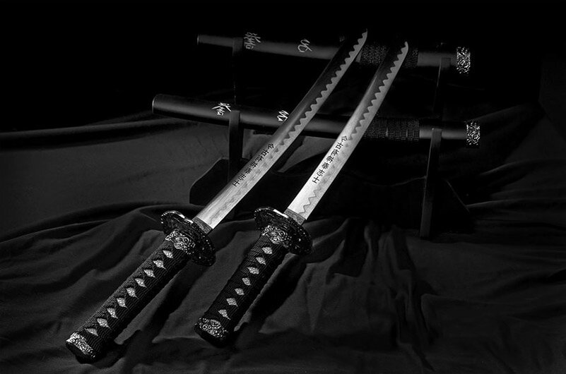 Главная часть любого меча — клинок. И катана никогда не получила бы такой известности, если бы не технология ее изготовления. В технологии изготовления таких «супермечей» и кинжалов «танто» использовались полосы из кричного железа, многократно прокованные и спеченные в единый клинок в старых печах, с мехами-воздуходувками, с топливом на древесном угле, а затем отпущенные и закаленные в водах местных болот и родников. Мастер-оружейник, как пра вило, тоже из клана самураев, начинал изготовление меча с синтоистских молитв и развешивания по кузнице и дому различных талисманов, а затем облачался в парадное кидабы металл «напитался» рядом эленом строю, одной или двумя руками. Иногда самураи бились катаной в паре с коротким мечом «вакидзаси» или кинжалом «танто».