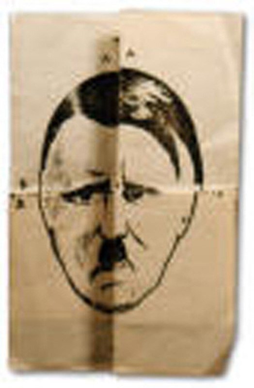 На листке бумаги изображались четыре свиньи. При помощи рук, листок складывался так, что на нем появлялось изображение германского фюрера А. Гитлера. Эдакий гаджет своего времени. Все просто. Нашел? Ставь палец вверх.