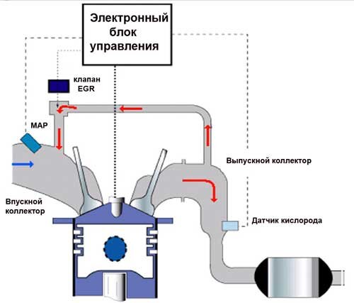 Клапан ЕГР устанавливается на машины по стандартам выше евро 4, для обеспечения меньшего выбросов оксидов азота. Принцип его работы прост, часть выхлопных газов попадает обратно во впускной коллектор и затем в камеру сгорания с чистым воздухом и топливной смесью для якобы его дожигания.