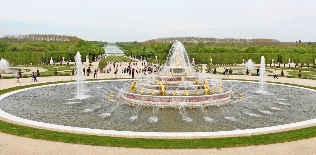 Дальше знаменитый версальский сад с фонтанами. Это просто потрясающе! Мы задались целью обойти все 40 фонтанов и весь сад, не так-то это просто и быстро, скажу я вам! Каждый из фонтанов — отдельное впечатление и произведение искусства! Практически все на тему греческих мифов, каждый огражден стенами из резных кустов/деревьев так, что ты находишься в огромной зеленой комнате наедине с этим фонтаном (это называется “боскет”), играет классическая музыка, можно сидеть и смотреть целую вечность!
