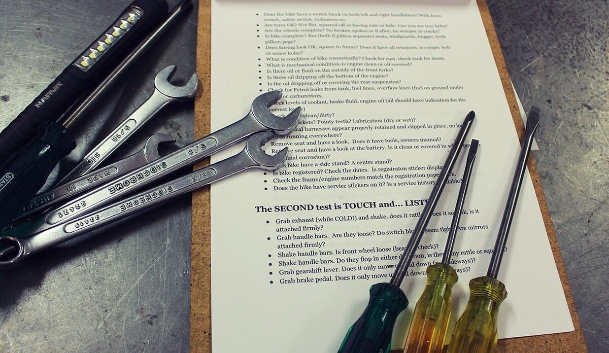 - Возьмите с собой на осмотр фонарик, гаечные ключи, отвертку, ветошь, блокнот и ручку, если есть – датчик давления в шинах. Каждый выявленный недостаток записывайте, чтобы не забыть, и подойти с этим списком к продавцу.