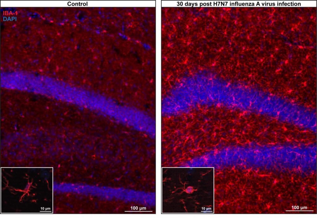 Credit: Hosseini et al., JNeurosci (2018) Болели гриппом? Оказывается, это заболевание влияет и на мозг. Посмотрите на снимки: из нового исследования, проведённого немецкими учёными, видно, что даже через 30 дней после заражения гриппом H7N7 эта болезнь оставляет след в виде повышенной плотности собственных иммунных клеток мозга — микроглии — в области гиппокампа. Кстати, о самой микроглии вы можете прочитать в нашем специальном большом материале. А об исследовании мы расскажем через несколько дней. Читайте материалы нашего сайта в Facebook, ВКонтакте и канале в Telegram, а также следите за новыми картинками дня в Instagram.