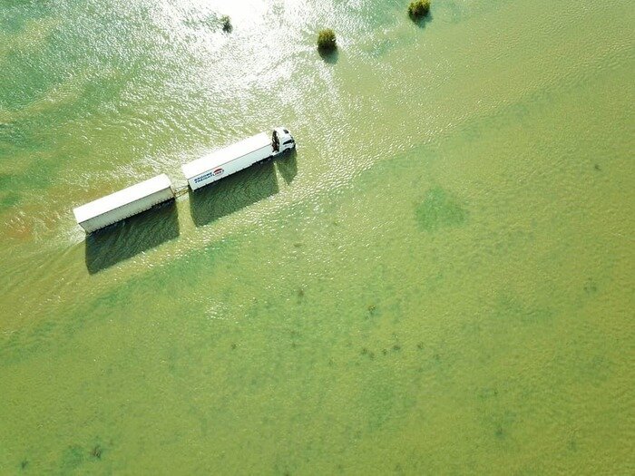 Дорога, которая регулярно оказывается под водой, и самое интересное, что по ней проезжают! Это впечатляет.