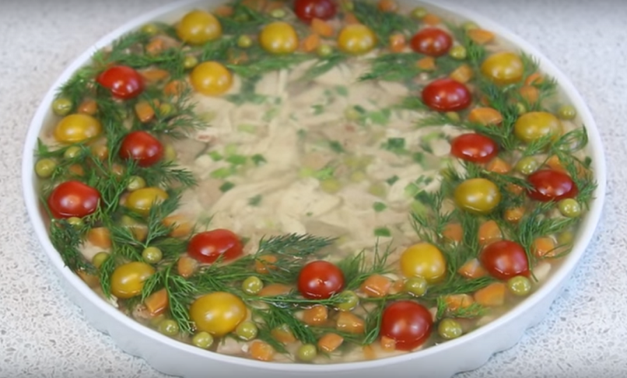 Заливное — это коронное блюдо к каждому празднику. Его готовят практически в каждой семье и у всех из поколения в поколение передается свой собственный рецепт. Конечно же, ваше заливное получается очень вкусным, но мы хотим добавить вам в копилку рецепт еще одного холодца. Готовить мы его будем с курицей и потрошками. Получится блюдо очень красивое и праздничное. Необходимые продукты Для бульона Для украшения Начинаем приготовление Вам также может понравится заливное из курицы «Под снегом». Рецепт его приготовления есть на нашем сайте.