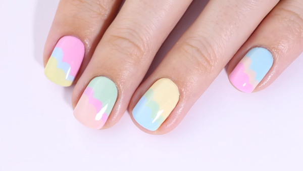 Здравствуйте! Сегодня я хочу вам рассказать об очень популярном и очень красивом маникюре! Вам не понадобится никаких инструментов и вы легко сможете его повторить! Вам понадобится три или пять разноцветных лака! Как и любой маникюр, мы начинаем со слоя базы: Затем наносим первый выбранный лак в два слоя и даем ему немного подсохнуть: Затем берем второй слой и наносим его тремя мазками, лесенкой, так же даем лаку подсохнуть: Теперь наносим третий слой так, чтобы он повторял нашу лесенку, но чуть ниже предыдущего слоя: Даем просохнуть и конечно покрываем наш маникюр слоем ТОПа: Как видите - я использовала разные сочетания на каждом пальце, но вы можете играть цветами как угодно, не говоря уже об использовании темных оттенков! Спасибо за внимание, если Вам понравился маникюр и мое описание, пожалуйста поставьте лайк:)