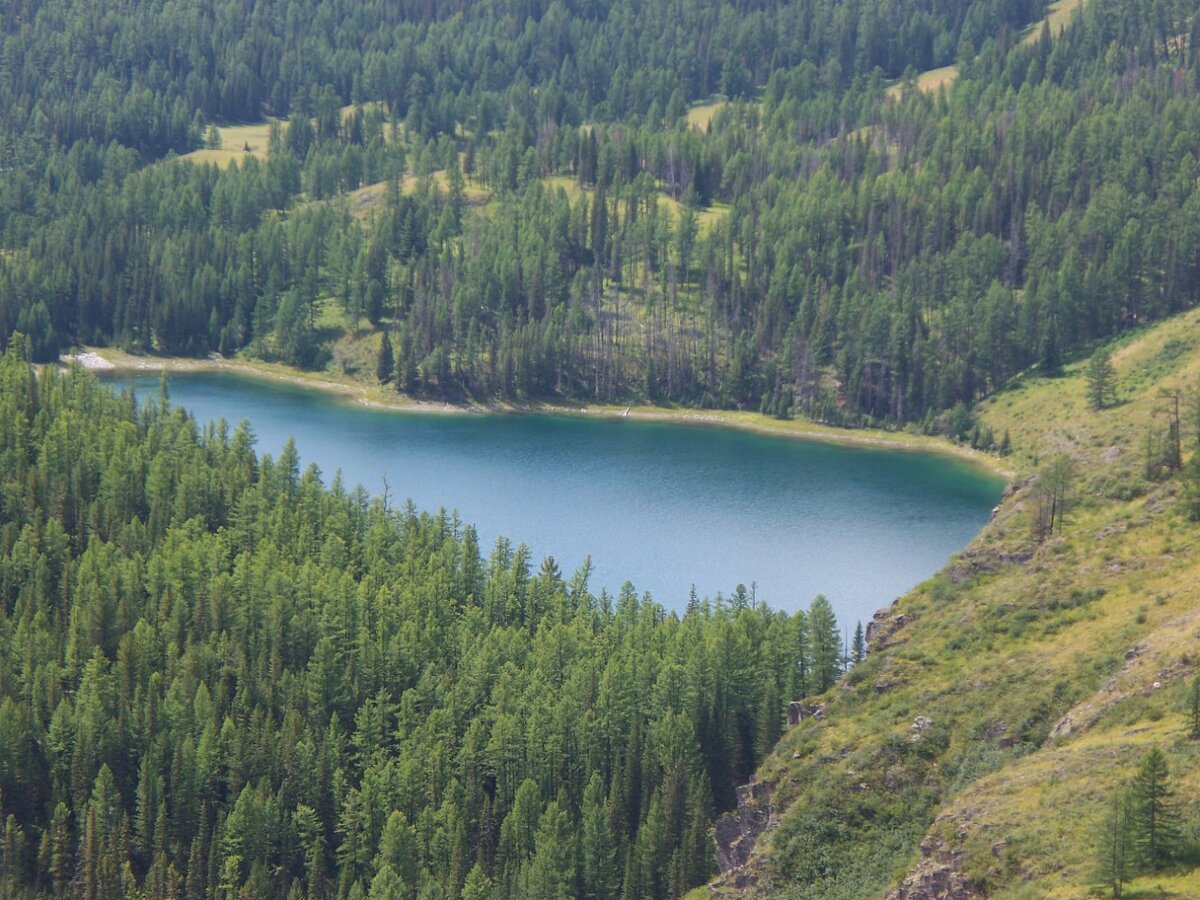 Дорога идет вдоль Чулышмана, повторяя его повороты, в сторону Телецкого озера. До него от перевала около 80 км.
