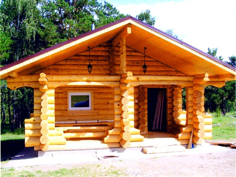 Большое значение имеют тип и качество строительного материала. Баню можно возвести из обычного бревна. Это более экономичный вариант, чем возведение из клееного бруса.