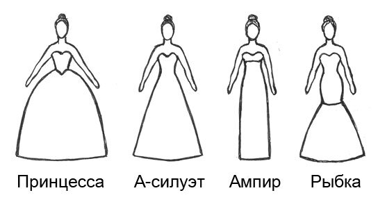 Девушкам, планирующим проведение свадьбы в период года, предлагаются самые актуальные фасоны платьев к этому незабываемому событию. И, конечно, определится очень сложно. Полистав несколько журналов, у представительниц прекрасного пола формируется свое представление идеального образа. Однако, какая бы вам ни понравилась картинка, без примерки не обойтись. Бывает так, что на фигуре такой наряд смотрится не очень, и потому предпочтения меняются. Как правило, в свадебных салонах представлена одежда в белых тонах, айвори и цвете шампанского. Здесь вы уже будете опираться на модель изделия, сочетание с цветом вашей кожи, оформлением свадьбы и т.д. А вот основные и самые распространенные типы платьев: Фасон «Принцесса» Очень популярный фасон уже на протяжении длительного времени. Верхняя часть тела поддерживается строгим корсетом, который в сочетании с пышной юбкой, делает из девушки истинную принцессу. Полным барышням не рекомендуется останавливать свой выбор на таком платье. Оно будет хорош