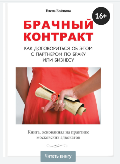 Ответ понятен – заключить договор. Интересно, что автор, сквозь всю книгу проносит идею того, что все ее клиенты, заключившие брачный договор, на данный момент не развелись. На мой взгляд, это свидетельствует о зрелости, ведь принятие такого решения говорит о серьезной ответственности перед собой, своим супругом, детьми и другими родственниками. Книга Елены Бойцовой – это так называемой must-have, который должен прочитать каждый. Повторюсь, даже если вы сегодня не собираетесь заключать брачный договор, и это вызывает у вас улыбку, то будете иметь представление о том, как бывает в жизни. А это уже половина успеха. Как говорится – кто вооружен (в данном случае знаниями), тот предупрежден.