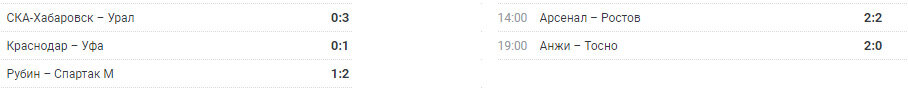 В матче «Ска-Хабаровск» против клуба «Урал» (итог матча 0:3) отличились игроки: Владимир Ильин (26’,89’), Отман Эль-Кабир (72’). Желтые карточки получили Артем Фидлер и Эрик Бикфалви из клуба «Урал», и Евгений Баляйкин из «СКА». В матче «Краснодар» против клуба «Уфа» (0:1) отличился Иван Паруевич(72’). Желтые карточки получили: Дмитрий Живоглядов, Кеинде Фатай, Иван Обляков из клуба Уфа и Рикардо Лаброде из «Краснодара». В матче «Рубин» против клуба «Спартак» (1:2) голы забили Софьян Ханни (18’) и Луис Адриано (81’) из клуба «Спартак» и Кристиан Нобоа (61’) из «Рубина». Желтые карточки получили Никола Максимович и Лукас Фернандо из «Спартака» и Федор Кудряшов, Владимир Гранат из «Краснодара». В матче «Арсенал» против клуба «Ростов» (2:2) голы забили Алексей Ионов (8’, 31’) из клуба «Ростов» и Артем Дзюба (14', 59') из клуба «Арсенал». Желтые карточки получили: Михаил Александров, Игорь Горбатенко, Виктор Альварес из клуба «Арсенал» и Александр Сапета, Александр Зуев из клуба «Ростов»