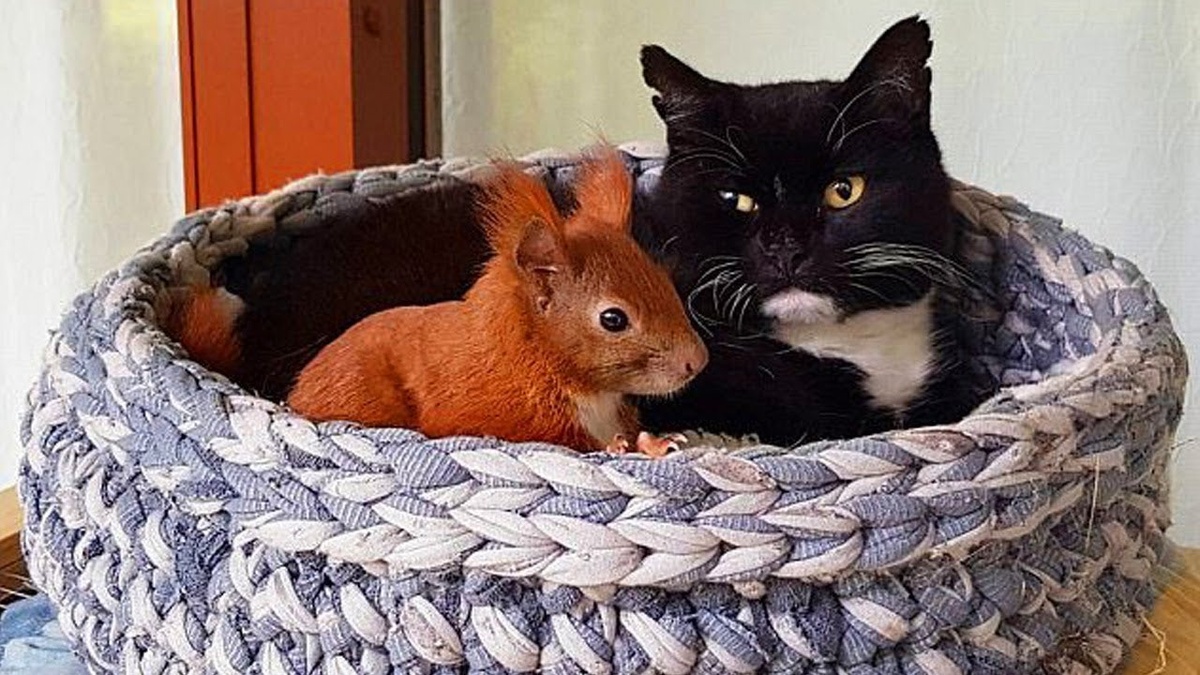 Трогательная история о дружбе белки и кошки