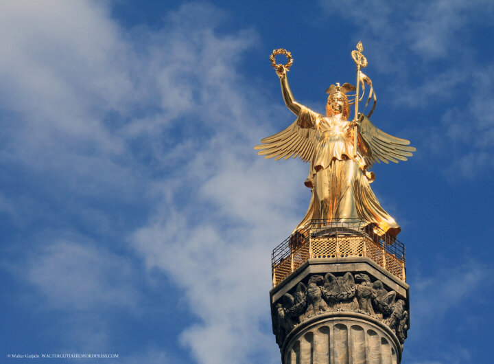 Триумфальная колонна (нем. Siegessäule) — памятник истории Германии и достопримечательность Берлина. Автор проекта, архитектор Иоганн Генрих Штрак (1805—1880) — ученик Карла Фридриха Шинкеля. Автор фигуры, венчающей колонну, — один из значительных скульпторов Германии Фридрих Драке (1805—1882). Монумент расположен в центре парка Тиргартен на площади Большая Звезда. Колонна была построена по приказу Вильгельма I в честь побед Пруссии в Датской войне 1864 года, Австро-прусской войне 1866 года и Франко-прусской войне 1870—1871 годов. На бронзовых рельефах гранитного цоколя изображены батальные сцены, рассказывающие о сражениях в этих войнах. Колонна была открыта 2 сентября 1873 года в третью годовщину победы в битве под Седаном. На вершине колонны установлена скульптура богини победы Виктории высотой 8,3 метра и весом 740 центнеров, именуемая в народе «Золотая Эльза» (нем. Goldelse). Чтобы придать достойный блеск одеждам богини, отцы города выделили в 1987 году килограмм золота. wiki Из