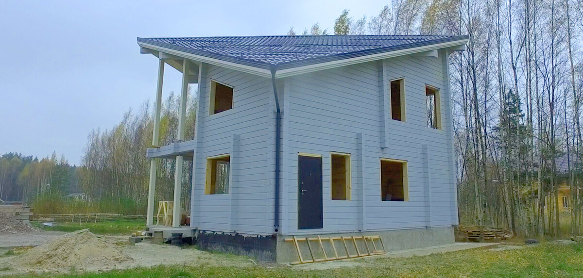 (https://www.youtube.com/watch?v=8UrrVqfrHEw) Прекрасный двух этажный дом из профиллированного бруса с косой крышей (конёк крыши по диагонали) по индивидуальному проекту. Сейчас полностью возведены стены, накрыта кровля. Готовятся окна с утеплением и перекрытие второго этажа. (https://www.youtube.com/watch?v=GPyqOx3NKOU) Дом практически готов под чистовую отделку.