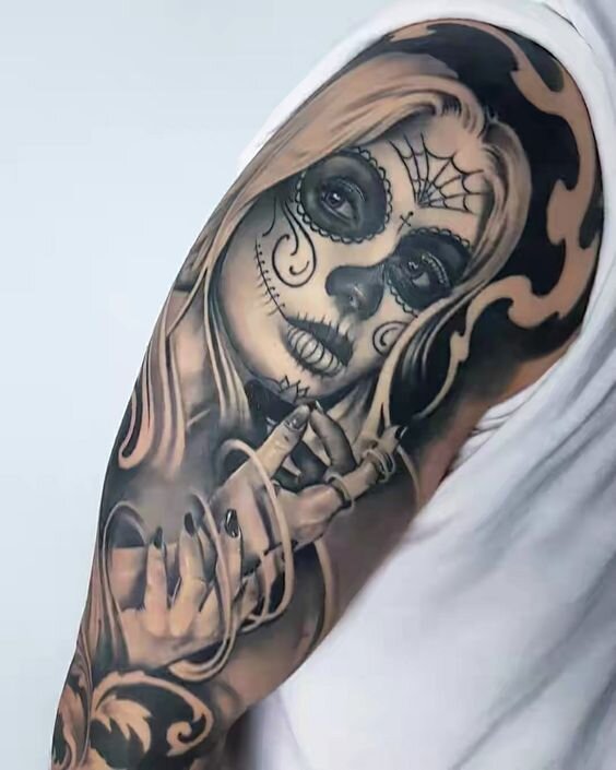 Одним из довольно новых, но не менее популярных считается тату стиль чикано. Он встречается настолько часто, что кажется ему не несколько десятков лет, а уже целая вечность. Откуда чикано пришел и почему так популярен? Тату стиль чикано – манящее непокорство Интригующее название стиля не подлежит дословному переводу. Так сложилось, что стиль считается мексиканским, а вот название пошло от слова «mexicano». Идея нанесения грозных татуировок относится к уличным бандам мексиканцев, которые таким образом проявляли свое непринятие общественных устоев. Их они считали тщетными, для первых носителей стильных татуировок, чикано рисунок указывал на высшую справедливость, что стоит за каждым поступком человека. Со временем интересные тату перенеслись к мирному населению, ведь идеи у таких татуировок красивые. Что же содержит в себе стиль чикано? Характерной особенностью таких татуировок выступает непременное исполнение в черно-белой гамме. Присутствуют оттенки серого, но стиль отрицает яркост