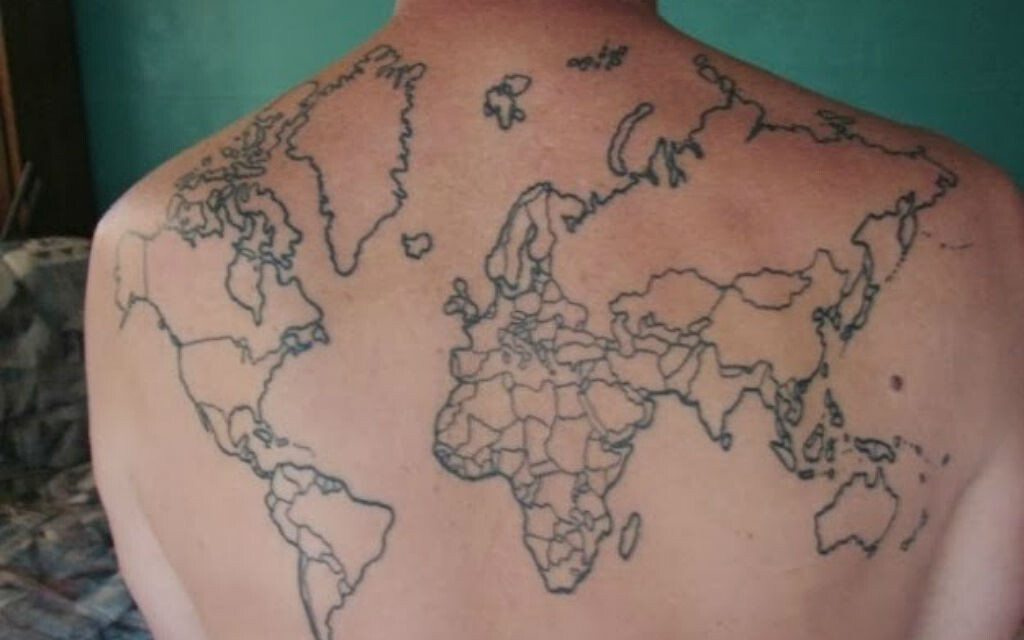 Он сделал тату пустой карты мира на спине и начал раскрашивать страны, которые посетил.