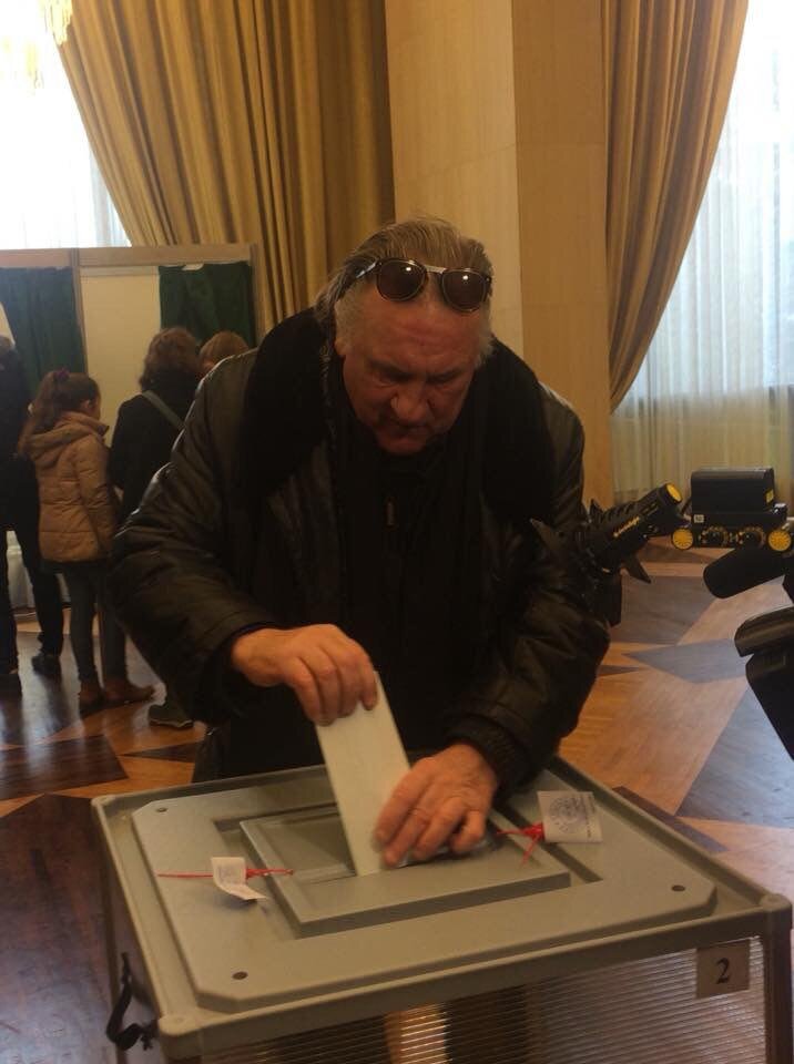 Актёр Жерар Депардье, получивший российское гражданство в 2013 году, проголосовал на выборах президента РФ. Свой голос он отдал на избирательном участке в Посольстве России во Франции. На вопрос о том, с какими чувствами он голосовал, Депардье ответил, "с патриотическими, с чувством любви к России".
