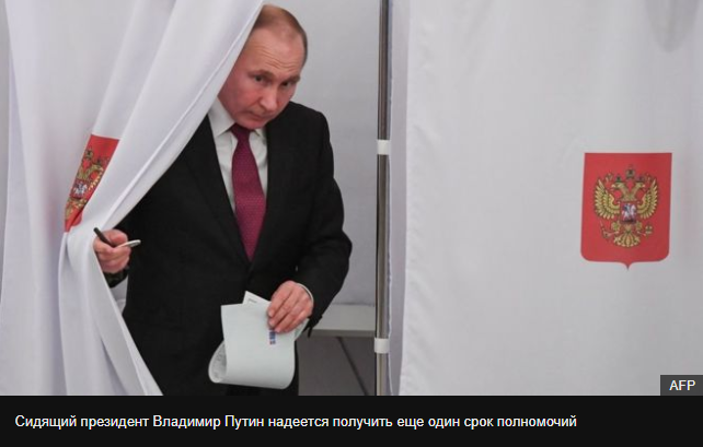 Русские голосуют на выборах, которые, вероятно, вернут Владимира Путина на четвертый срок в качестве президента. Голосование началось на российском Дальнем Востоке в 20:00 по Гринвичу в субботу и открылось в Москве через девять часов. Более 100 миллионов человек имеют право голоса. Выездные опросы ожидаются в конце воскресенья. Путин надеется на еще один шестилетний срок и предстанет перед семью другими кандидатами. Он сказал, что будет добиваться успеха как результата, который дал бы ему «право выполнять обязанности президента». Его комментарии были сделаны на национальном телевидении, когда он проголосовал в Москве. К соперникам Путина относятся миллионер-коммунист, Павел Грудинин, бывший телеведущий реальности, Ксения Собчак и ветеран-националист Владимир Жириновский. Главному лидеру оппозиции Алексею Навальному запретили стоять из-за обвинения в мошенничестве, которое он осудил как политически мотивированный. Г-н Навальный призвал избирателей бойкотировать выборы и направил тыся