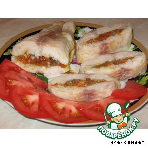 Время приготовления: 30-40минут Ингредиенты : Рецепт "Рыбный рулет": Берем два рыбных филе. Посыпаем специями. Делаем начинку из тушеной моркови с луком. Кстати, начинка может быть любая, по вкусу. На один кусок филе кладем начинку и прикрываем сверху другим. Заворачиваем в фольгу и перевязываем нитками. Ставим в духовку минут на 30-40. Поварёнок.ру