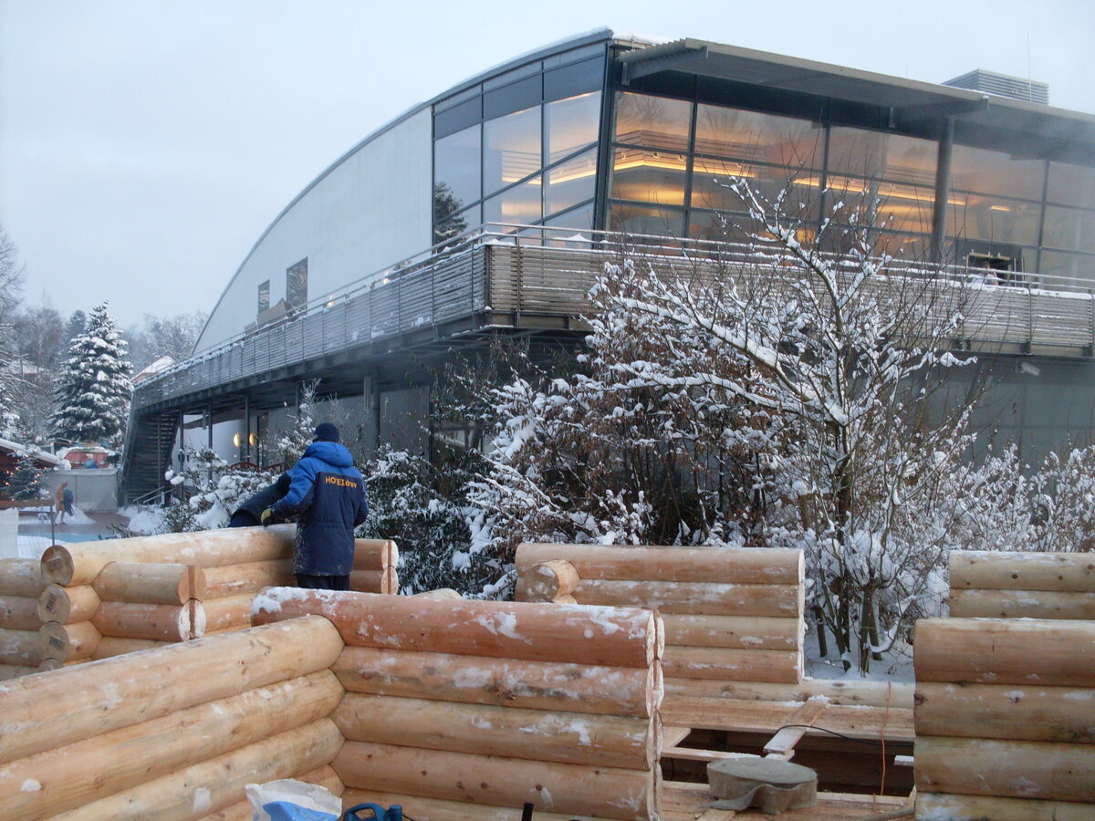 Наша фирма получила заказ от Департамента курортов земли Нижняя Саксония Германии спроектировать и построить русскую баню и ещё домик для релаксации в Хуфеландтермах города Бад-Пюрмонт. Это очень красивое место с целебными минеральными источниками. В этих термах уже были наряду с другими возможностями расслабления и отдыха финские сауны, турецкая баня, цветочная, другие бани с разной температурой и назначением, закрытый и открытый плавательные бассейны с минеральной водой. И вот заказчик обратился к нам с заказом на русскую баню, причём из кедра. Взялись с удовольствием, хотя и с определённым волнением. Потому что немецкие требования к качеству и материалов и исполнения нам уже были известны из некоторого предыдущего нашего опыта строительства домов в Германии. Проекта у заказчика не было, только эскизные пожелания. Сделали, согласовали, потом у заказчика появилось желание что то изменить, что то добавить. Планировали начать монтаж осенью, но заказчик не смог вовремя сделать фундаме
