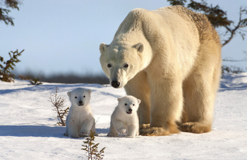 Белый медведь является одним из самых крупных и опасных хищных животных на планете. Длина тела взрослого медведя может достигать до 3-х метров при массе около 1000 кг. В связи с экстремальными условиями обитания у белых медведей более острые клыки, а также более длинные когти, нежели чем у бурых собратьев. Очень развитое обоняние позволяет им находить объект на расстоянии 1,5 км и глубиной до 1 м. Все эти навыки совместно с невероятной силой лап позволяют этим хищникам, в прямом смысле слова, раздавить добыче голову. Добычей полярного медведя обычно являются тюлени, но ей может стать и морж, и даже кит. В схватке с человеком белый медведь обычно ведет себя осторожно и нередко предпочитает убежать, но когда он голоден, то может первым напасть на человека. Атаку он производит очень стремительно и бесшумно, поэтому добыча зачастую даже не подозревает о его присутствии.