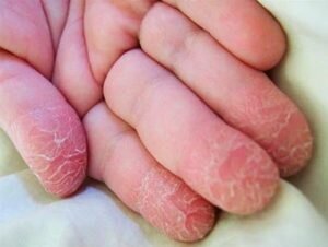 У большого количества людей весной развивается авитаминоз. Недостаток и полное отсутствие одного или нескольких витаминов называется авитаминозом. Самыми первыми признаками такого патологического явления считаются кожные проблемы. Если рассмотреть на фото симптомы авитаминоза на ладони , можно заметить следующие выраженные проявления: шелушащия на фоне выраженной сухости кожа; покраснение некоторых частей тела частичное или разлитое; небольшая сыпь, обычно напоминающая слои; кожа начинает трескатся; образование морщин у молодых людей; появление сосудистого рисунка; пигментация; образование язвочек. Популярными распространенниями начальной стадии клинического течения авитаминоза специалисты считают руки, лицо, область шеи и декольте. Это происходит, потому что данные участки тела подвержены постоянному контакту с агрессивной внешней средой и частой обработкой моющими и дезинфицирующими средствами. При недостатке определенных витаминов, эластичность и влажность кожных покровов умен