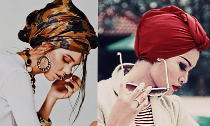 Как завязать палантин на голове и с чем его комбинировать. Создай свой идеальный образ! 1. Техника «концы внутрь». В варианте с черно-коричневым шарфом положите его на голову, затем отведите концы на затылок и завяжите там узел. Потом еще раз поднимите концы палантина, перекрестите их над верхней частью головы, и снова опустили концы к затылку. Завяжите их там узлом и спрячьте концы под нижнюю часть (заложите под платок в затылочной зоне). В случае как с красным палантином, опустите голову, положите шарф на затылок. На лбу сделайте узел и поднимите голову, откидывая края шарфа назад (от лобного узла), и спрячьте под затылочную часть шарфа. 2. «Косая укладка». На верхней части лба, скрещиваются 2 слоя шарфа. Один слой ложится на второй по косой и получается треугольник у центра лба. Положите палантин на макушку головы так, чтобы он находился слегка наискосок. То есть он должен прикрывать левую часть головы (волосистая часть лба закрыта), а правую часть открывать так, чтобы корни