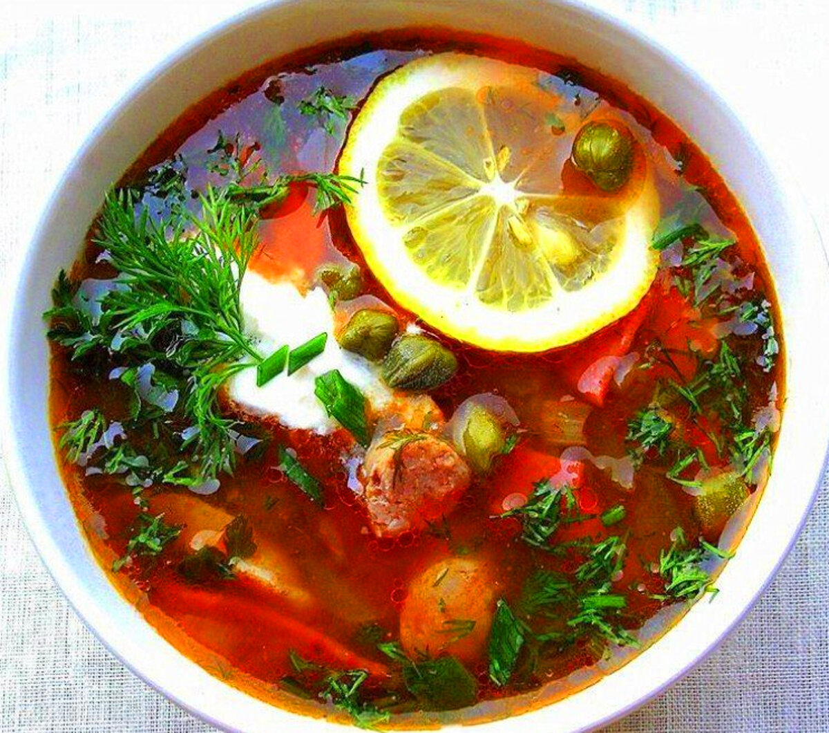 Ни что так не придает сил после хорошего гуляния, как огуречный рассол или хорошая солянка. В этой статье мы разберем несколько секретов хорошей солянки. Читайте внимательно и ставьте лайк. Я не буду подробно останавливаться на рецепте и граммовке. Их без труда можно найти в Яндексе в большом количестве и поэкспериментировать. Больше вниманию уделю тонкостям. Кстати, Вы знали, что солянка бывает не только мясная, но и рыбная, и даже грибная. Вкратце технология приготовления выглядит следующим образом. Вам понадобится наваристый мяной бульон (о том как его сварить, читайте в статье про борщ). Лук обжарьте на сковороде до золотистого цвета и добавьте томатную пасту. Вместе с ней жарьте ещё несколько минут. Соленые огурцы режьте кубиком и припустите в собственном рассоле. Мясные полуфабрикаты порежьте соломкой и слегка обжарьте на сковороде. Все подготовленные ингредиенты, а также маслины и каперсы добавьте в готовый бульон и варите ещё 15-20 минут. Секреты хорошей солянки. Секре