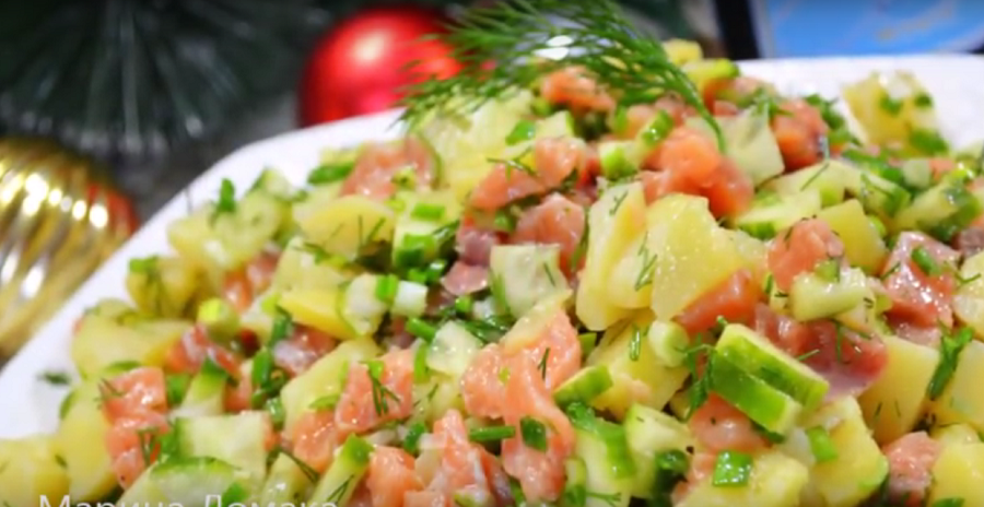 Представляем вам рецепт вкусного салата. Готовится он просто и быстро. Такой салат и на каждый день можно готовить и на праздничном столе он будет отлично выглядеть. Салат получается вкусным, сочным и очень нежным. Необходимые продукты Начинаем приготовление Малосольную горбушу для нашего салата можно приобрести в магазине, но лучше всего замариновать самостоятельно, по рецепту с нашего сайта.